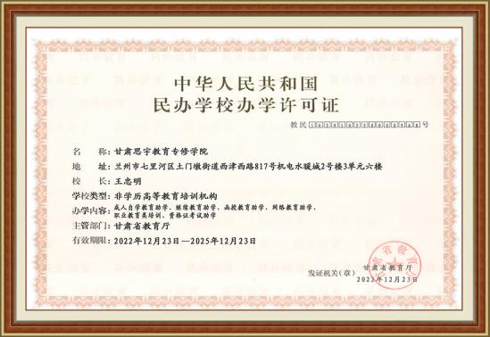甘肃思宇教育专修学院(民办非企业单位)(民办学校办学许可证)